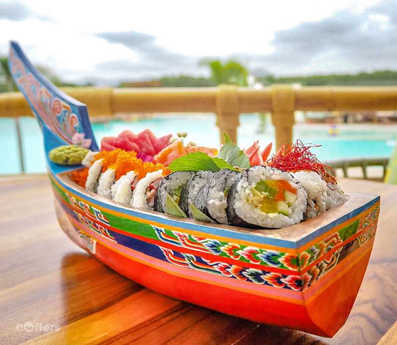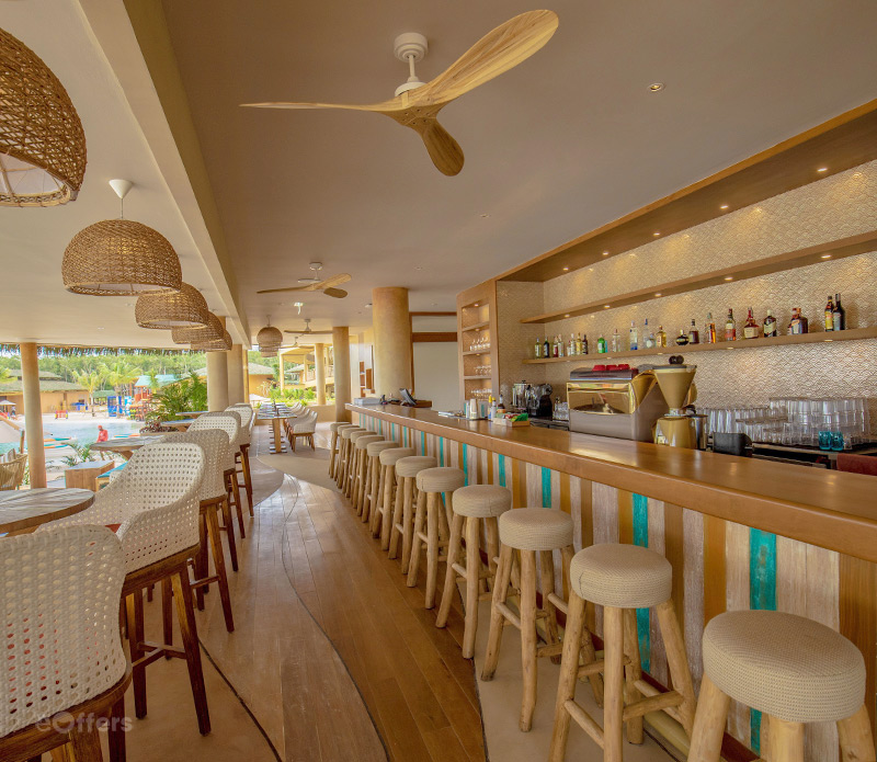 - โซนร้านอาหารและบีชบาร์ (Restaurants & Beach Bar) อิ่มอร่อยกับเมนูหลากหลายตั้งเเต่ สเเน็ค ตลอดจนอาหารซิกเนเจอร์ ใน ทรีเฮ้าส์ เรสเตอรองเเอนด์บีชบาร์ (Tree House Restaurant & Beach Lounge), เบย์กริลล์ (Bay Grill), และฟู้ดทรัคส์ในบริเวณบลูทรีอารีน่า (Blue Tree Arena) ล้วนบรรจงคัดสรรวัตถุดิบชั้นดี ครีเอทเมนูหลากหลายสไตล์นานาชาติ นั่งชิลล์ๆชมพระอาทิตย์ตกดินสุดเเสนจะโรเเมนติก