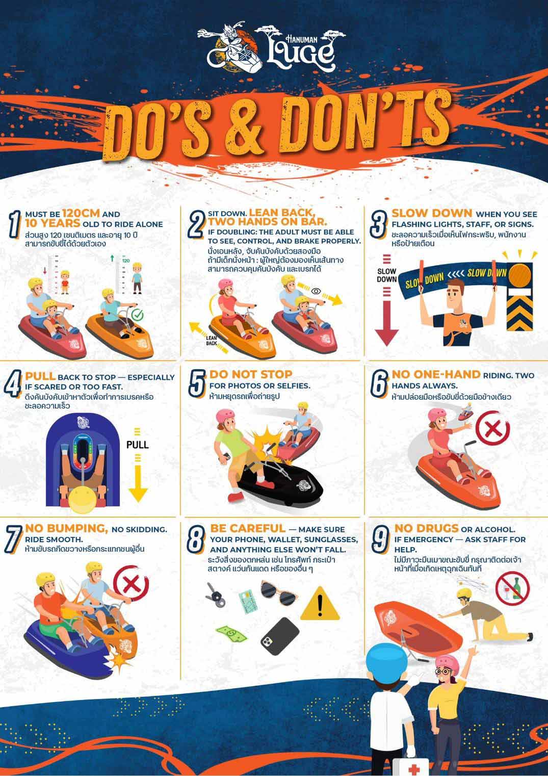 - Please wear comfortable outdoor clothing such as T-shirt and shorts, Flat-solesneakers for walking on cable. No sandals allowed